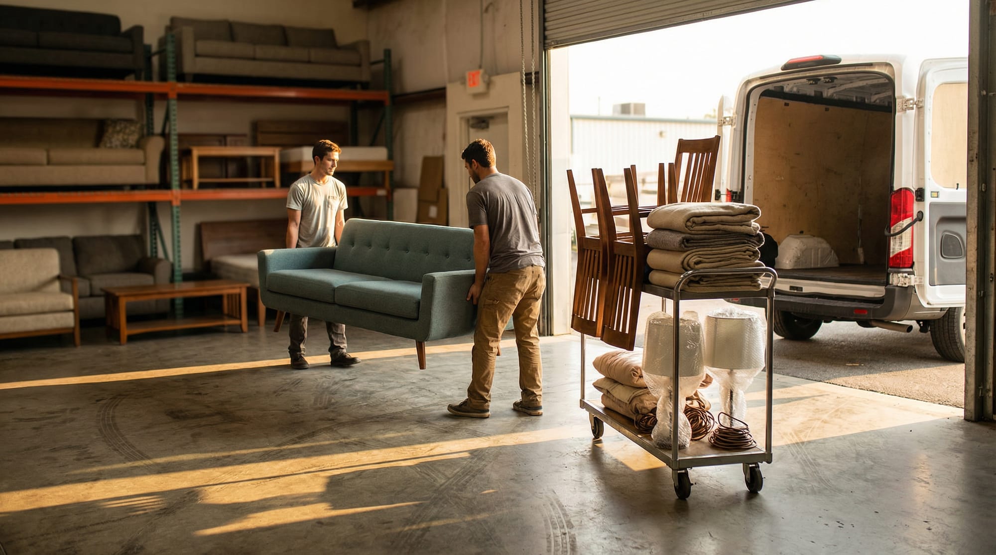 نقل سريع ومنظم مع تحميل وتنزيل آمن وحفاظ كامل على الأثاث حتى الوصول.